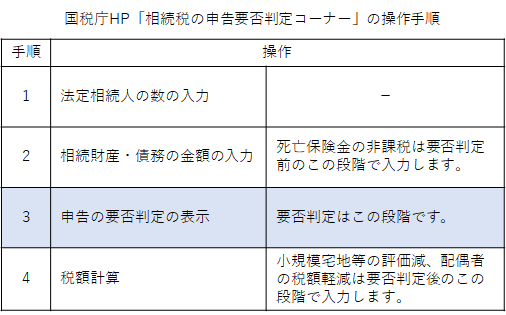 国税庁ホームページの「相続税の申告要否判定コーナー」で説明できます。