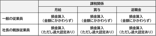 下表は一般の従業員と社長の親族従業員の給与の課税の違いです。